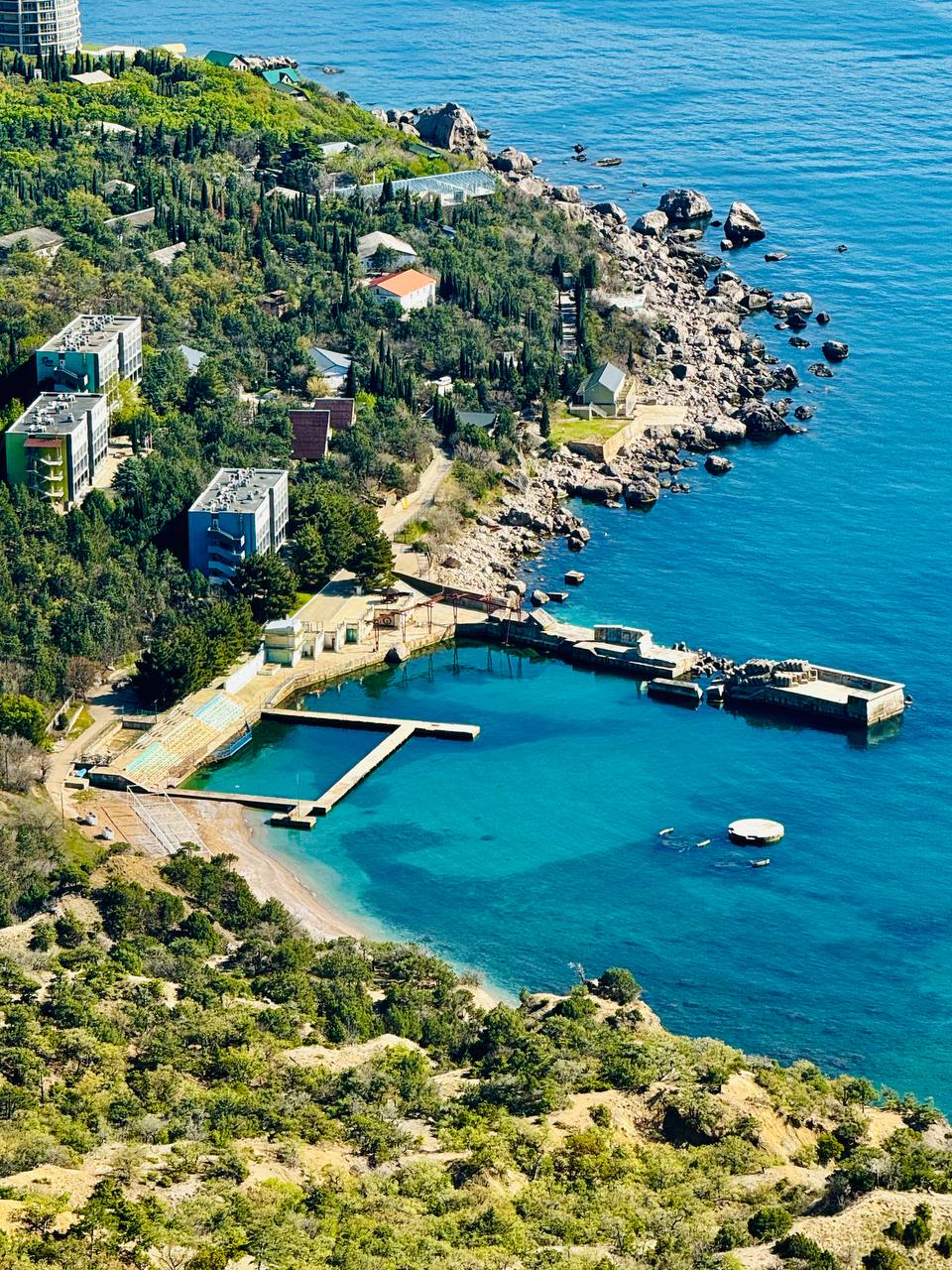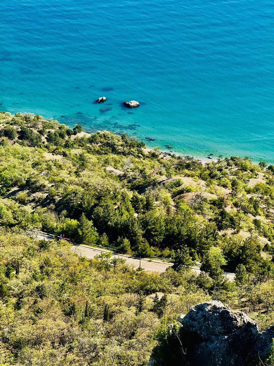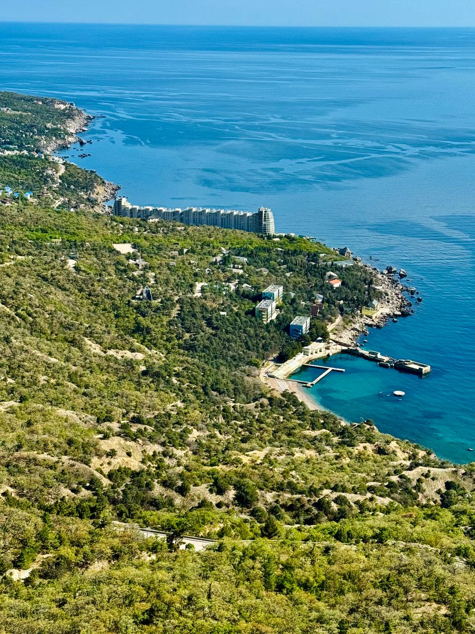 Это самая высокая точка трассы Ялта–Севастополь. Со смотровой открывается потрясающий вид на Ласпинскую и Батилиманскую бухты. Скалы Ласпи — это горный известняковый массив на западе Крымской гряды.