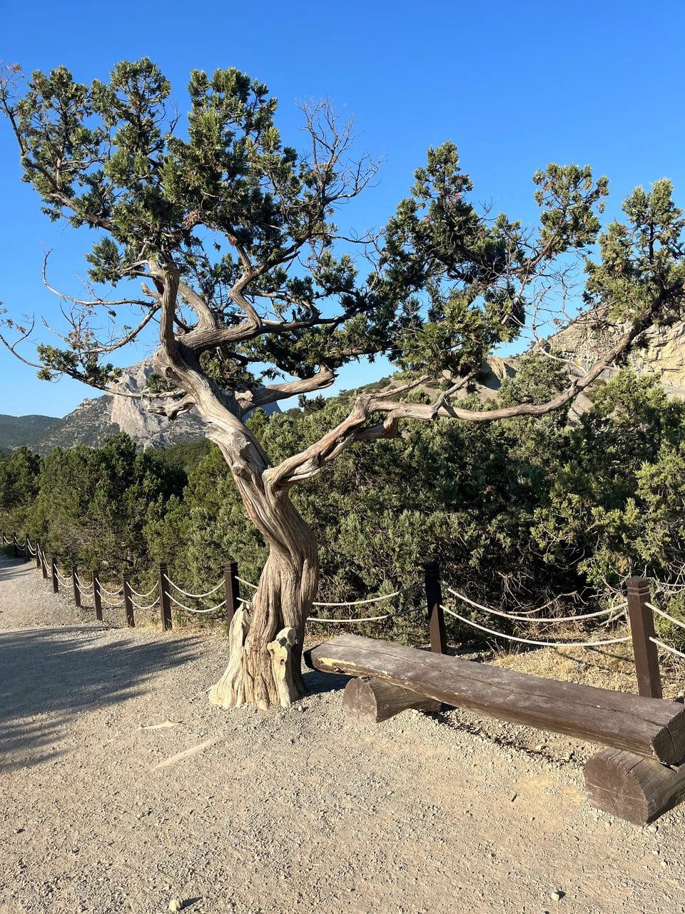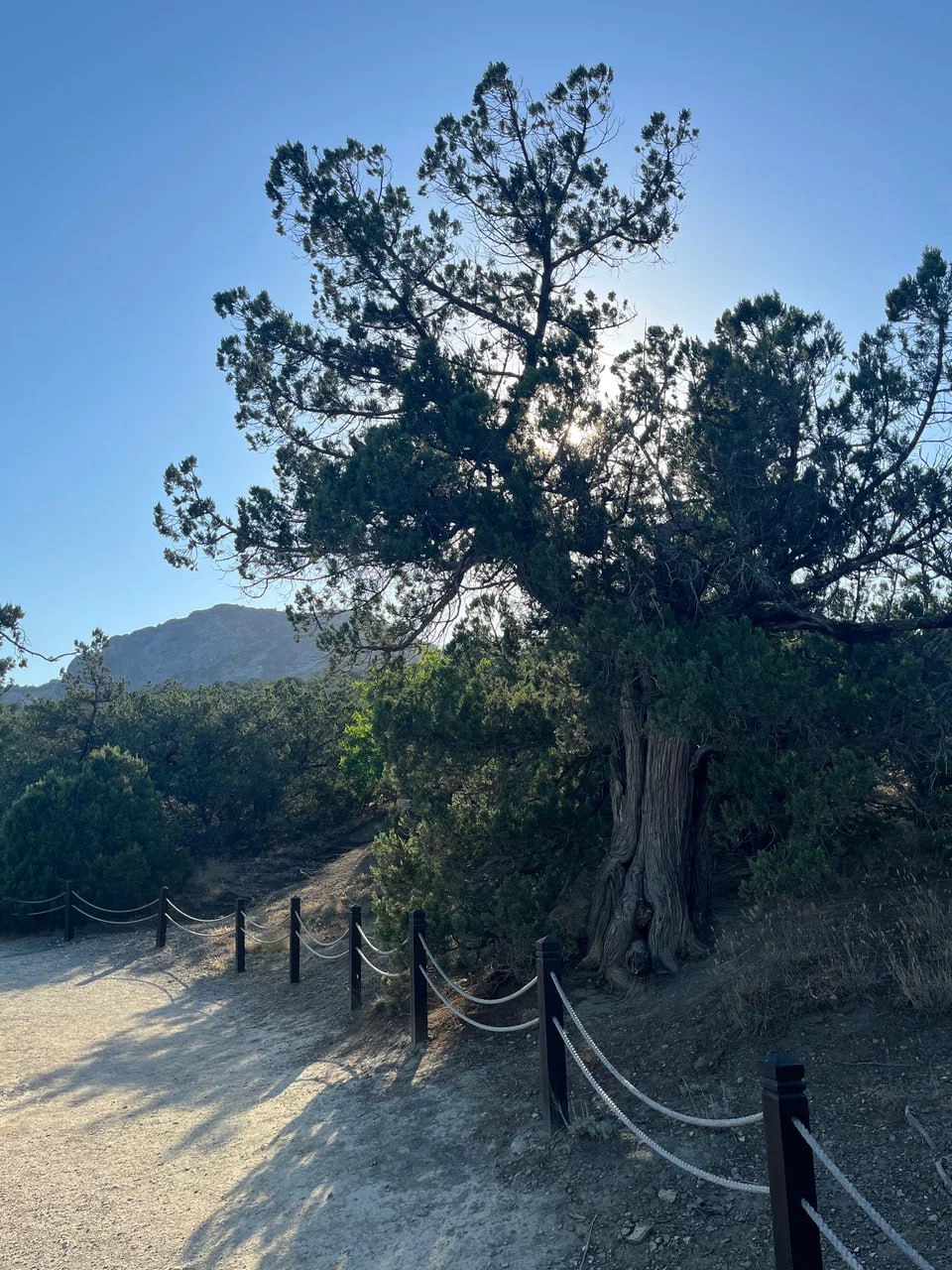 Здесь можно увидеть можжевельник высокий и можжевельник красный. Эти деревья поражают своей мощной формой: скрученные временем стволы, узловатые ветви, аромат хвои и смолы.