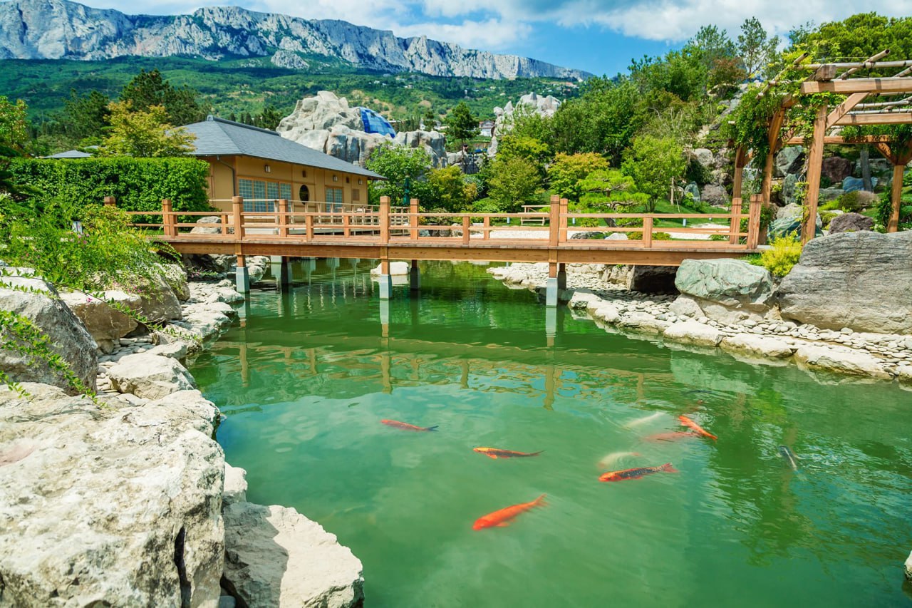 Страна Восходящего солнца поставила для гостиницы растения, рыб и даже камень требуемых разновидностей.