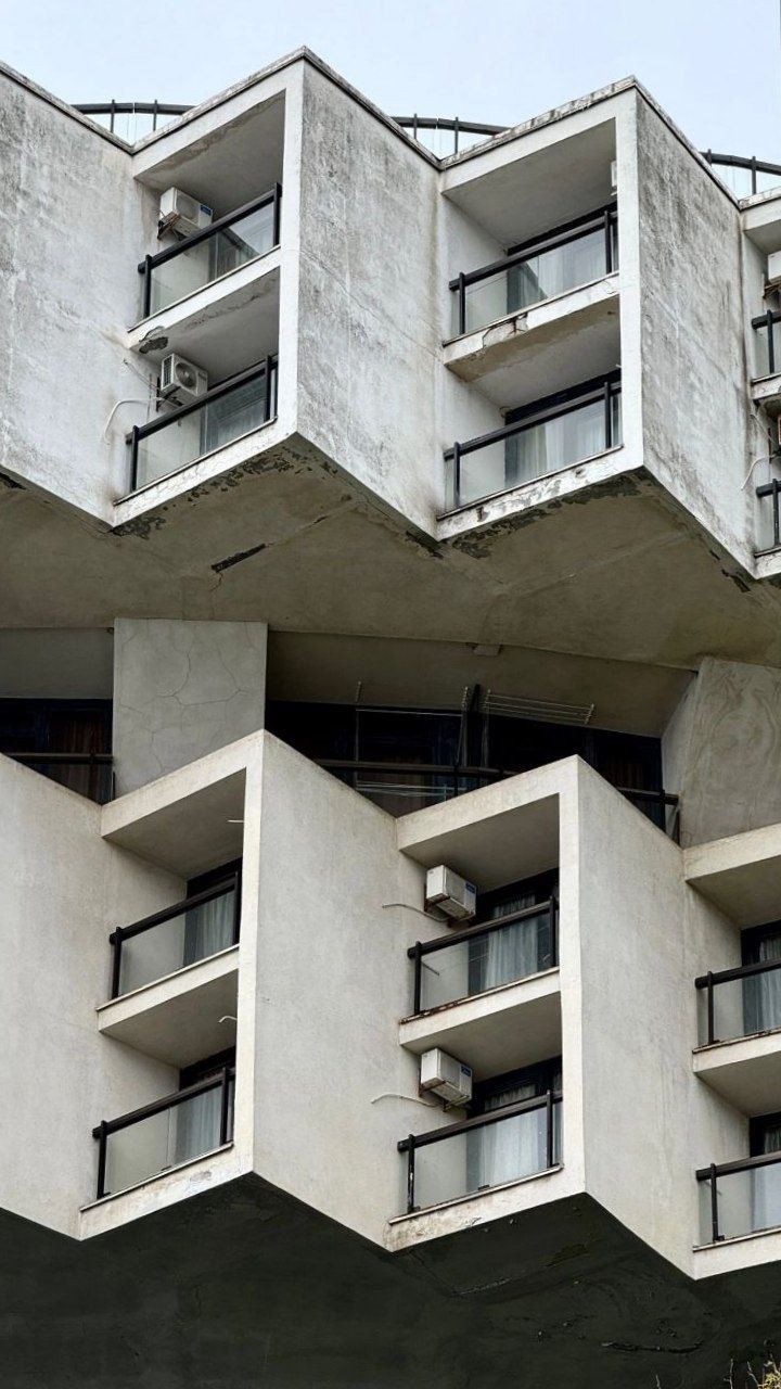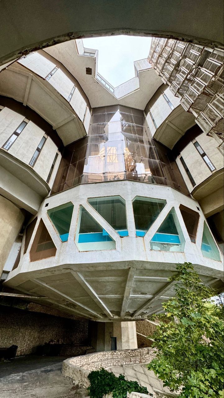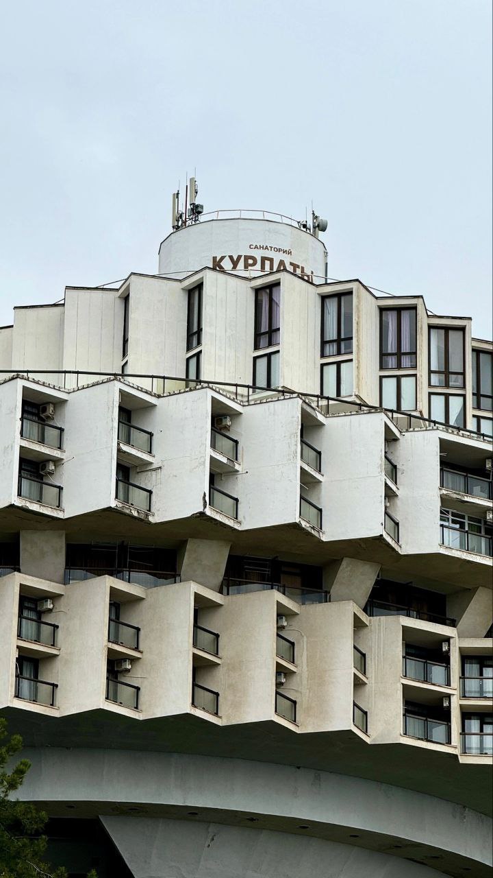 Произведение советского архитектурного искусства, некогда шумевший санаторий Южного берега с 400 номерами, концертным залом, панорамной столовой-рестораном и бассейном сейчас закрыт, и любоваться его монументальностью, к сожалению, можно только со стороны.